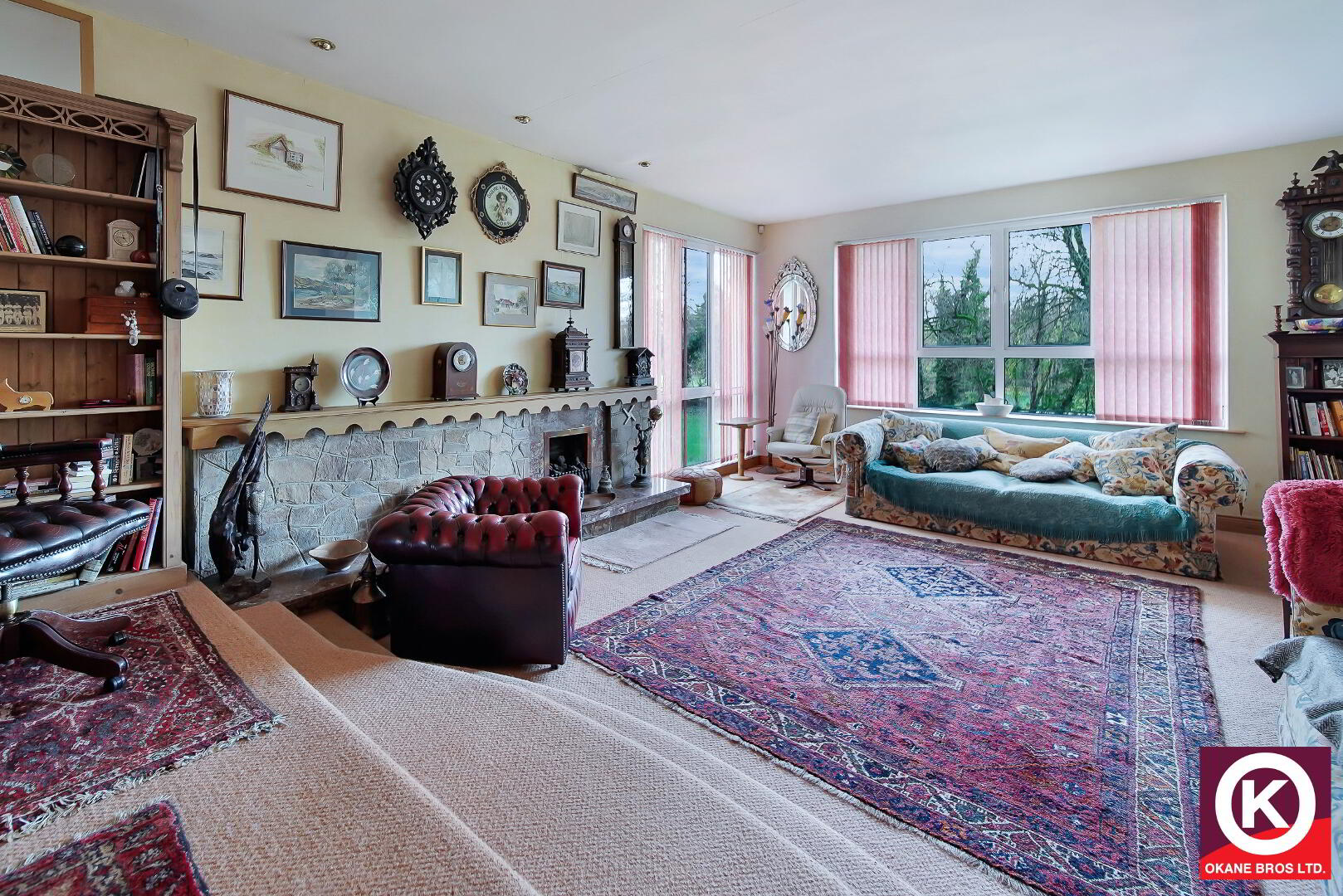Marble surround fireplace, insert and heart. Carpet floor covering. Recess lighting. TV Point.