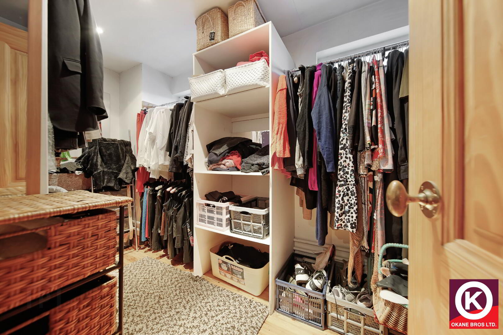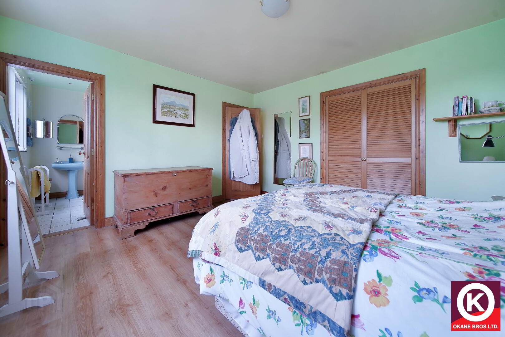 Laminate wooden floor covering. Built-in-wardrobe.