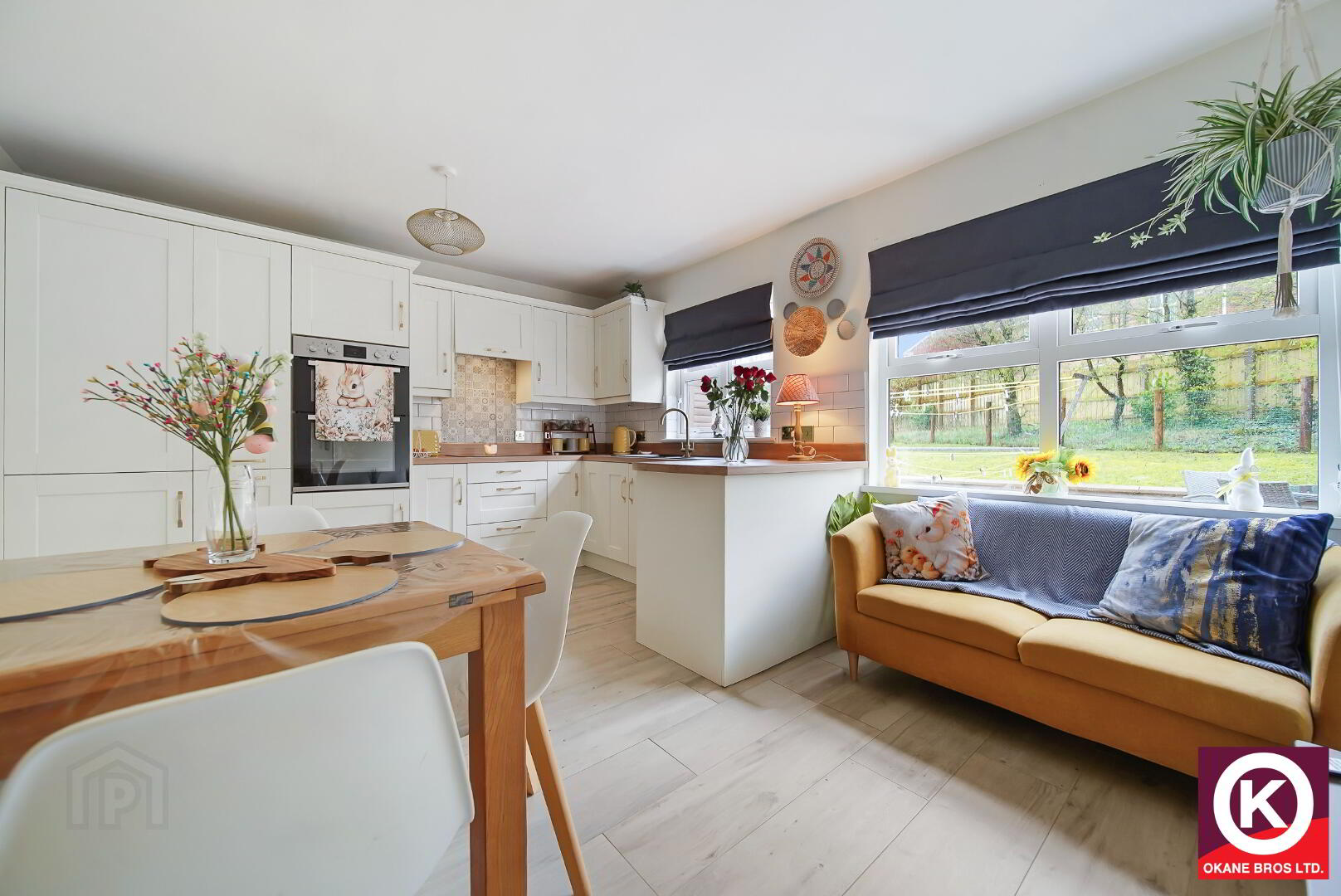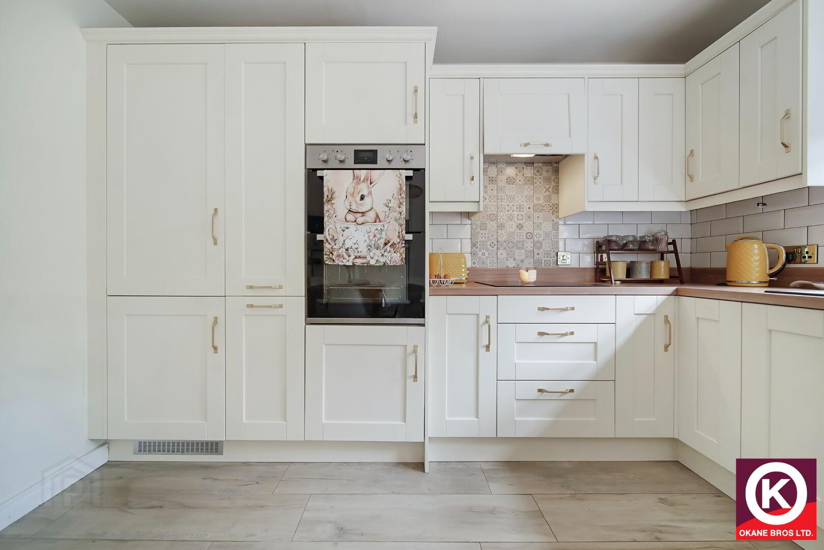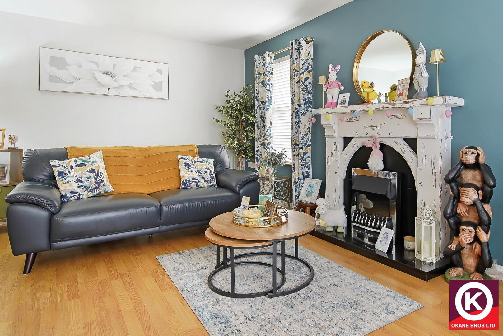 This property is a modern and spacious three-bedroom home designed for practical family living. The ground floor features a large lounge with a decorative fireplace, a well-equipped kitchen and dining area with integrated appliances, and a separate utility room for laundry and storage. Durable wood-effect tiled flooring runs throughout most of the lower level, complemented by a convenient guest W.C. The first floor comprises three generously sized bedrooms, all finished with laminate wooden flooring. The master bedroom includes its own en-suite with an electric shower, while the second bedroom features a built-in wardrobe. A full family bathroom serves the remaining rooms, offering both a separate bath and a second electric shower, all set against fully tiled walls for easy maintenance. Externally, the property is finished with low-maintenance PVC double-glazed windows and heated by an oil-fired system. It offers excellent outdoor utility with a tarmac driveway for off-street parking, a concrete rear yard, and a spacious garden extending to the side and rear. This combination of internal modern fittings and functional outdoor space makes it a highly versatile residence. Offers over £199,950