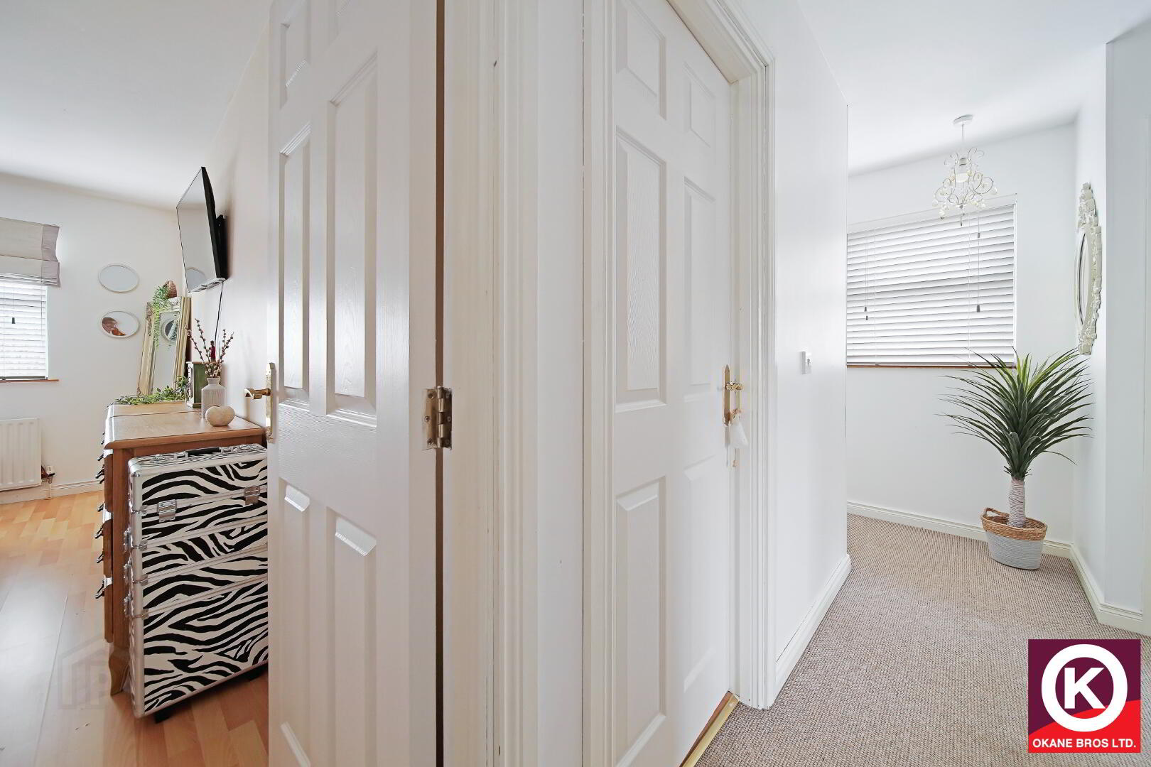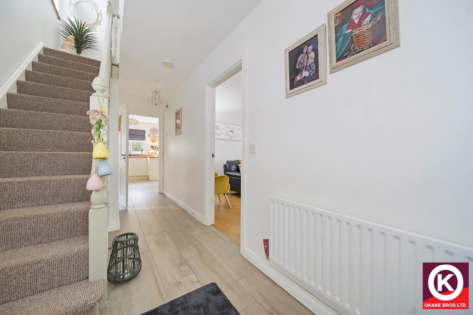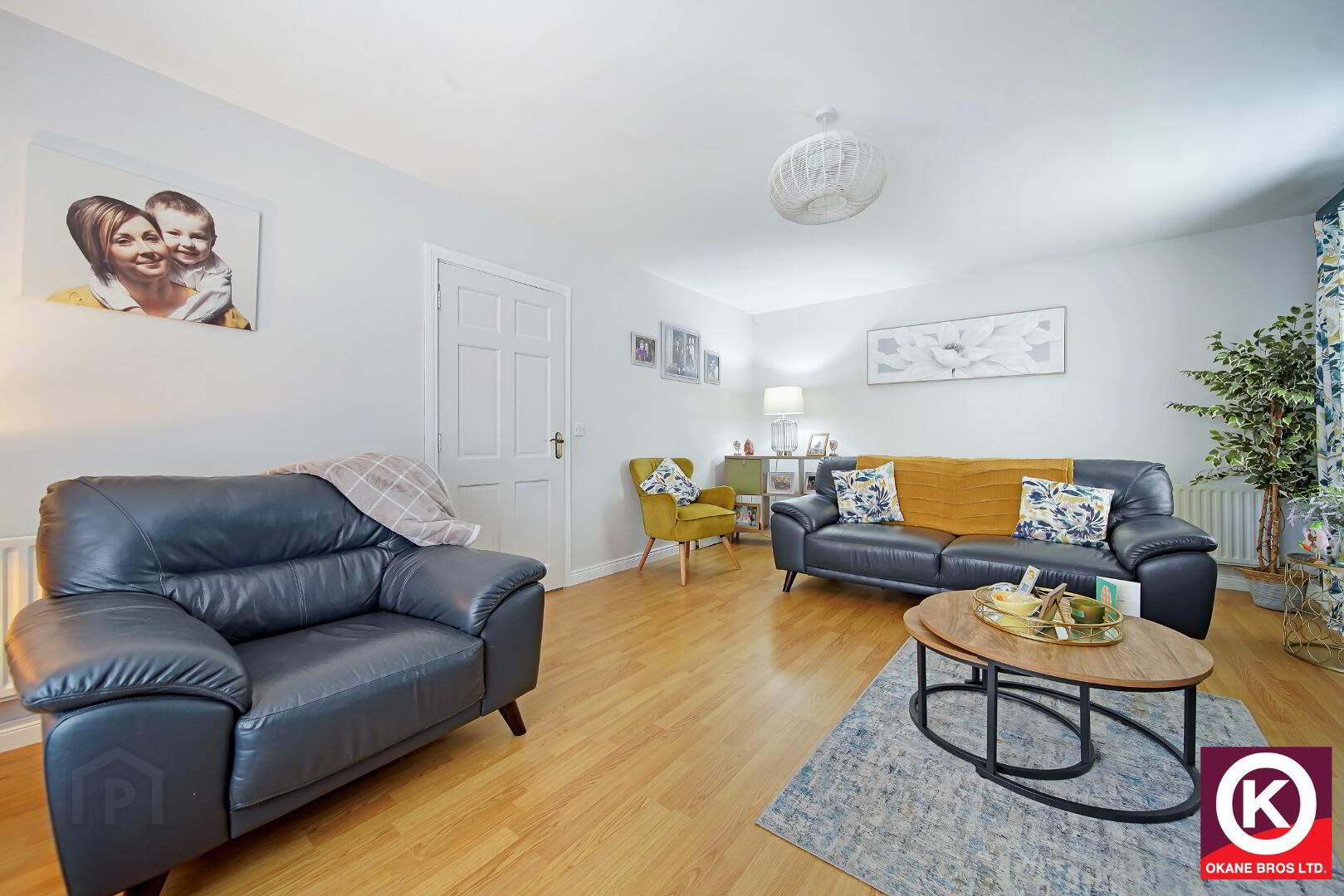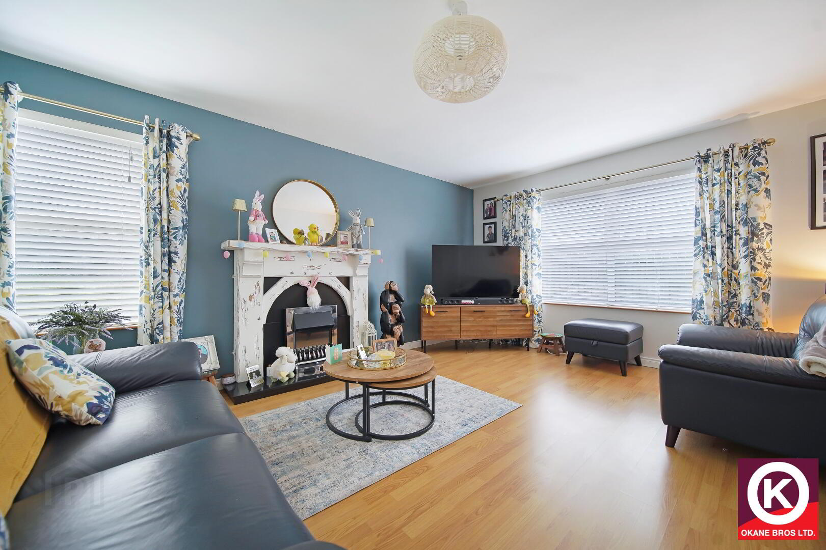 This property is a modern and spacious three-bedroom home designed for practical family living. The ground floor features a large lounge with a decorative fireplace, a well-equipped kitchen and dining area with integrated appliances, and a separate utility room for laundry and storage. Durable wood-effect tiled flooring runs throughout most of the lower level, complemented by a convenient guest W.C. The first floor comprises three generously sized bedrooms, all finished with laminate wooden flooring. The master bedroom includes its own en-suite with an electric shower, while the second bedroom features a built-in wardrobe. A full family bathroom serves the remaining rooms, offering both a separate bath and a second electric shower, all set against fully tiled walls for easy maintenance. Externally, the property is finished with low-maintenance PVC double-glazed windows and heated by an oil-fired system. It offers excellent outdoor utility with a tarmac driveway for off-street parking, a concrete rear yard, and a spacious garden extending to the side and rear. This combination of internal modern fittings and functional outdoor space makes it a highly versatile residence. Offers over £199,950
