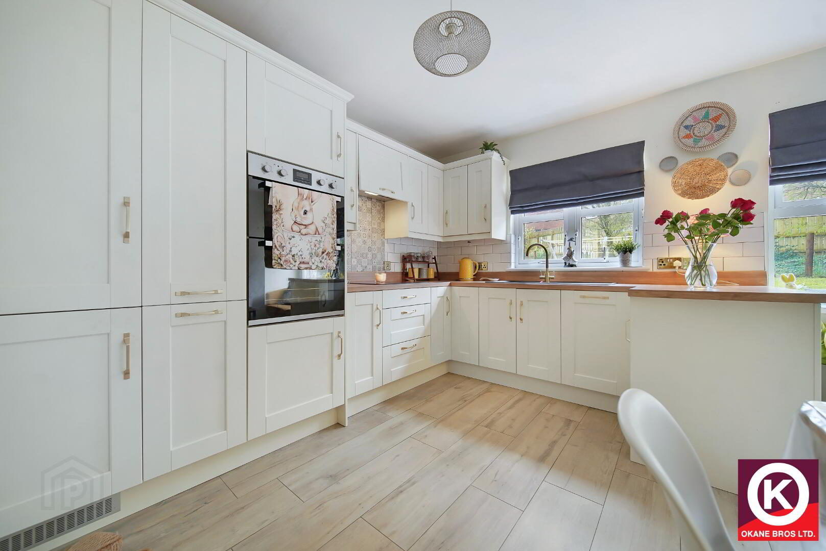 Modern fitted high and low level units. Integrated fridge and freezer. Integrated ceramic hob, oven and grill. Integrated dishwasher. Wooden effect tiled floor covering. Extractor fan. Synthetic Composite Franke Sink.