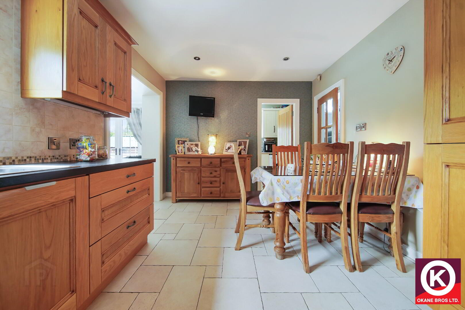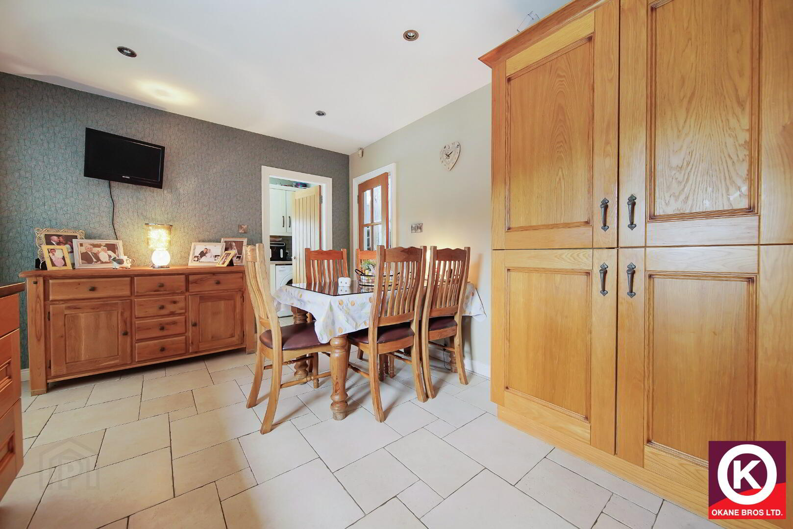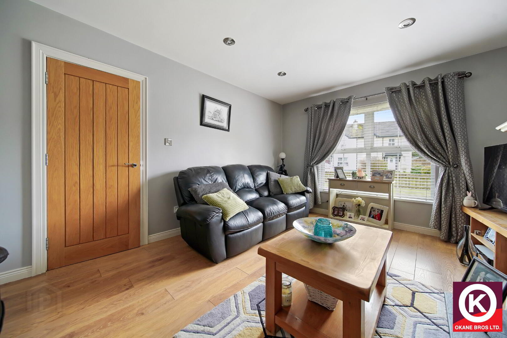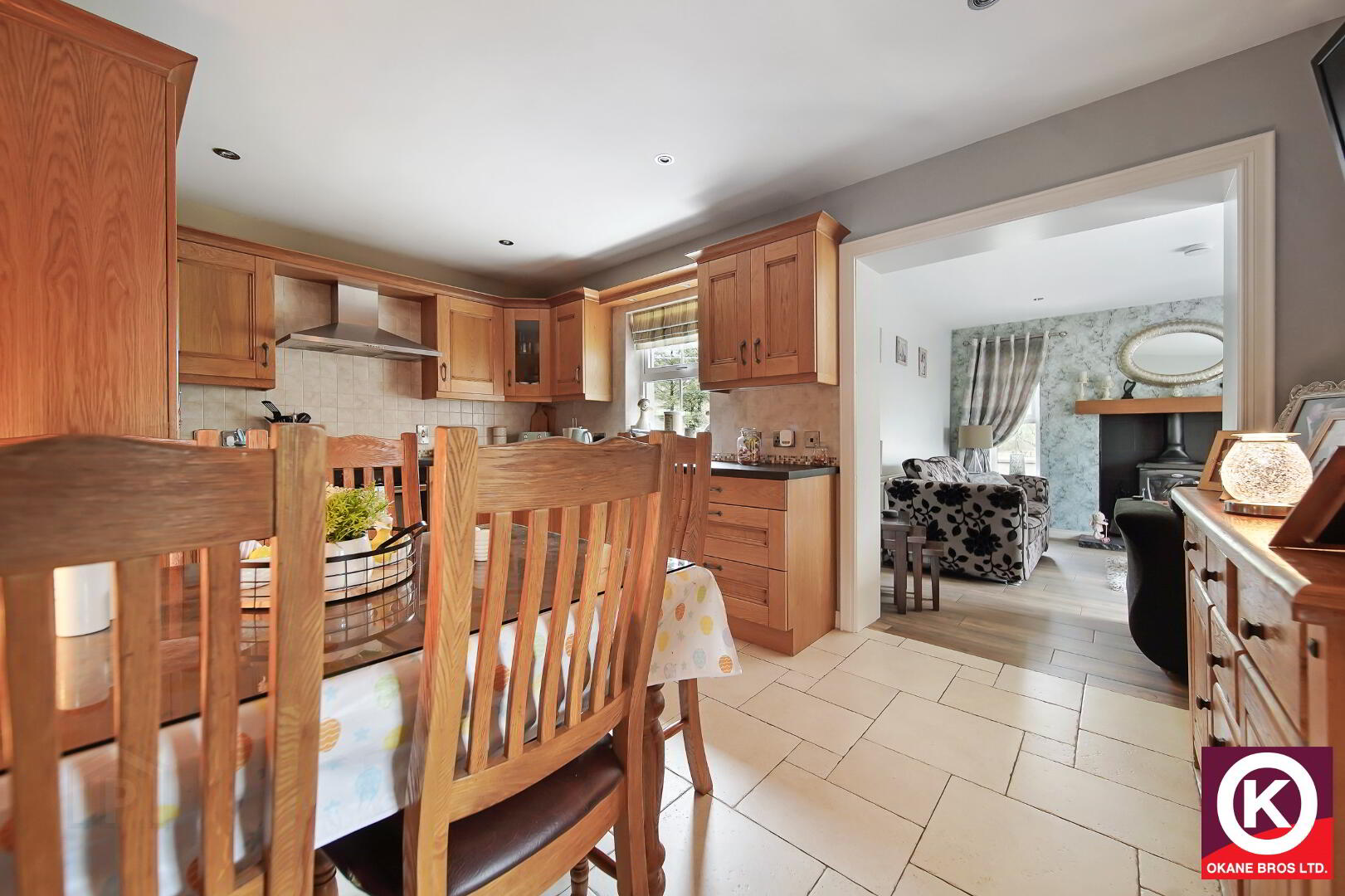 Wooden effect tiled floor covering. Stove (Boiler Stove). Recess lighting. Patio doors rear yard. TV Point.