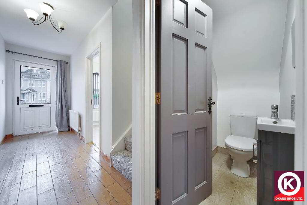 Tiled floor covering. PVC exterior door with glazed side panels. Phone Point.