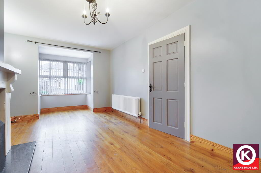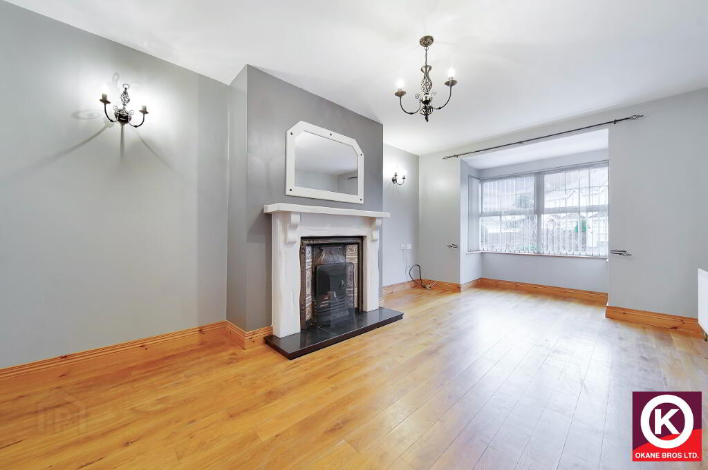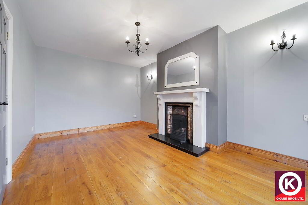 Solid wooden floor covering. Bay window. TV Point. Wooden surround fireplace with cast iron inset and marble hearth.