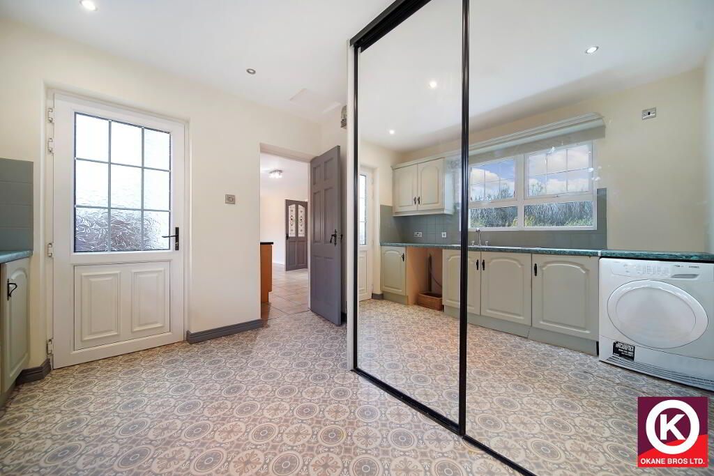 Low level units. PVC glazed exterior door. Stainless Steel Sink. Plumbed for washing machine. Recess lighting. Sliding door storage unit.