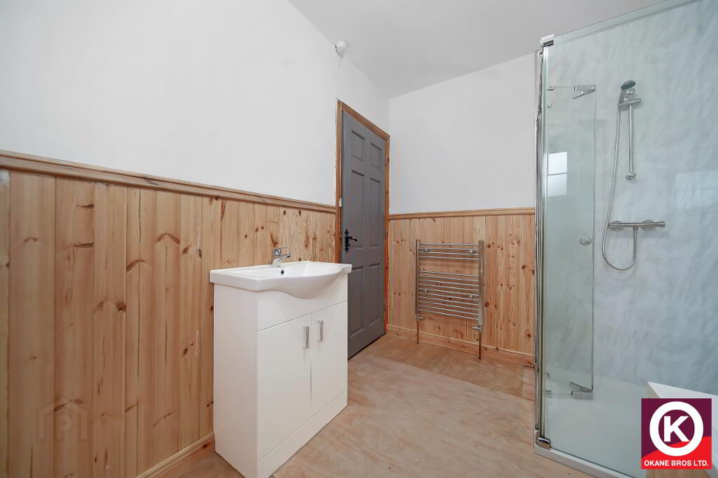 Redring electric shower. Wash Hand Basin. Extractor fan. Recess lighting. PVC Panelling to internal shower walls. Tiled floor covering.