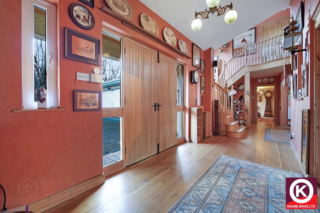 Double wooden entrance doors with glazed side panels. Vaulted wooden panel ceiling. French oak floor covering. 3 No. storage area off.