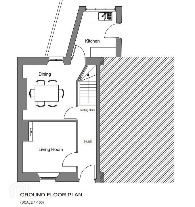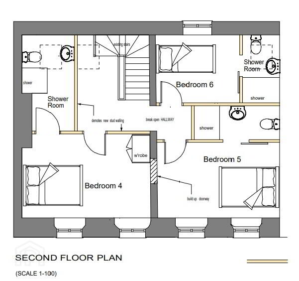 Included in the sale is a mid terrace residential property which requires refurbishment. There is an indicative drawing proposing 6 no. bedrooms (5 en-suite), living room, dining room, kitchen and bathroom.