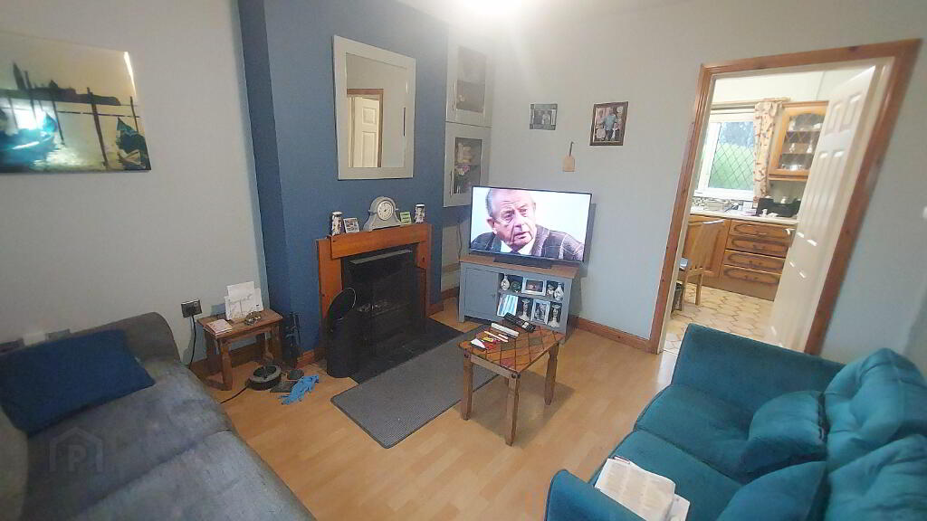 Laminate wooden floor covering. Open fire with back boiler. Wooden surround fireplace with slate hearth. TV Point.