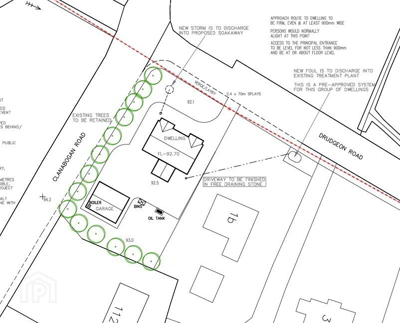 - SITE EXTENDS TO C.0.30 ACRES WITH FRONTAGE ONTO BOTH DRUDGEON AND CLANABOGAN ROADS