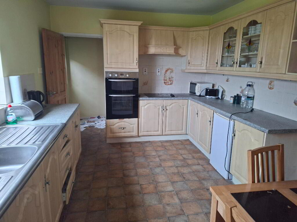 Fitted high and low level units. Integrated electric hob, oven and grill. Extractor fan. Partly tiled walls.