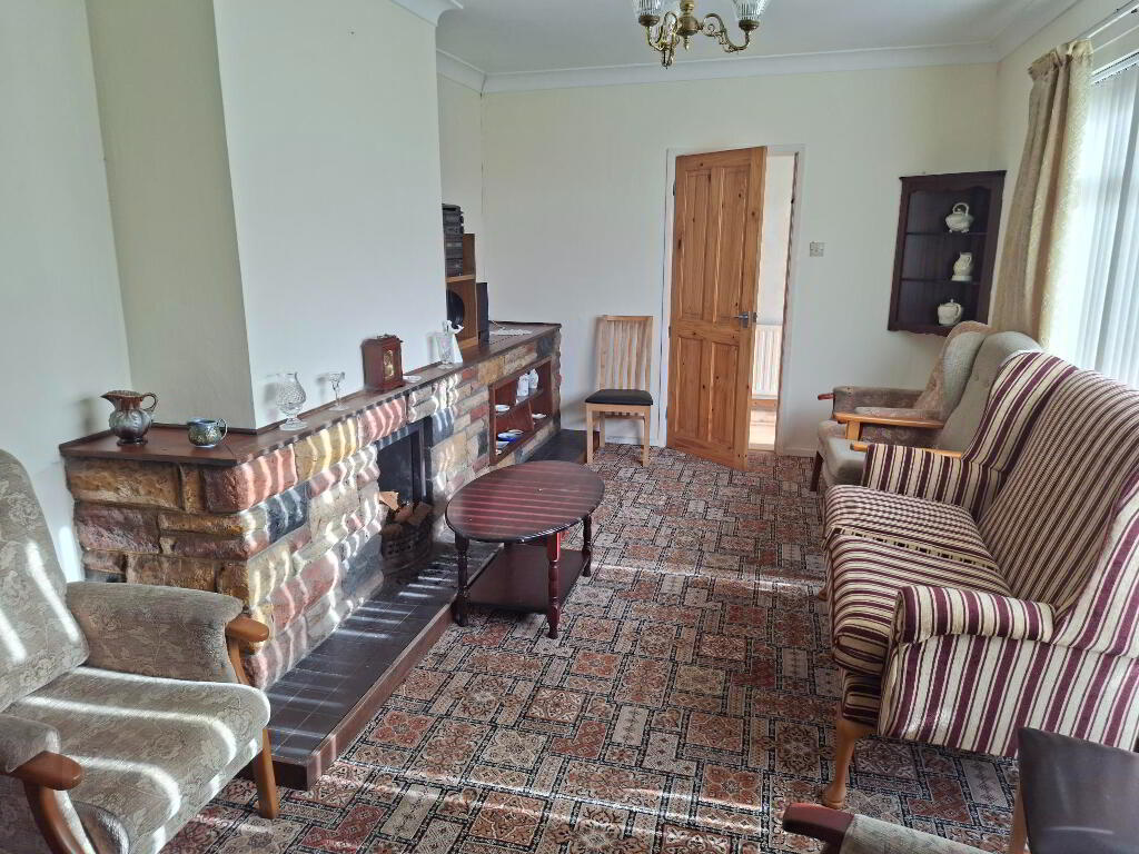 Carpet floor covering. Stone surround fireplace with tiled hearth. TV Point. Coving.