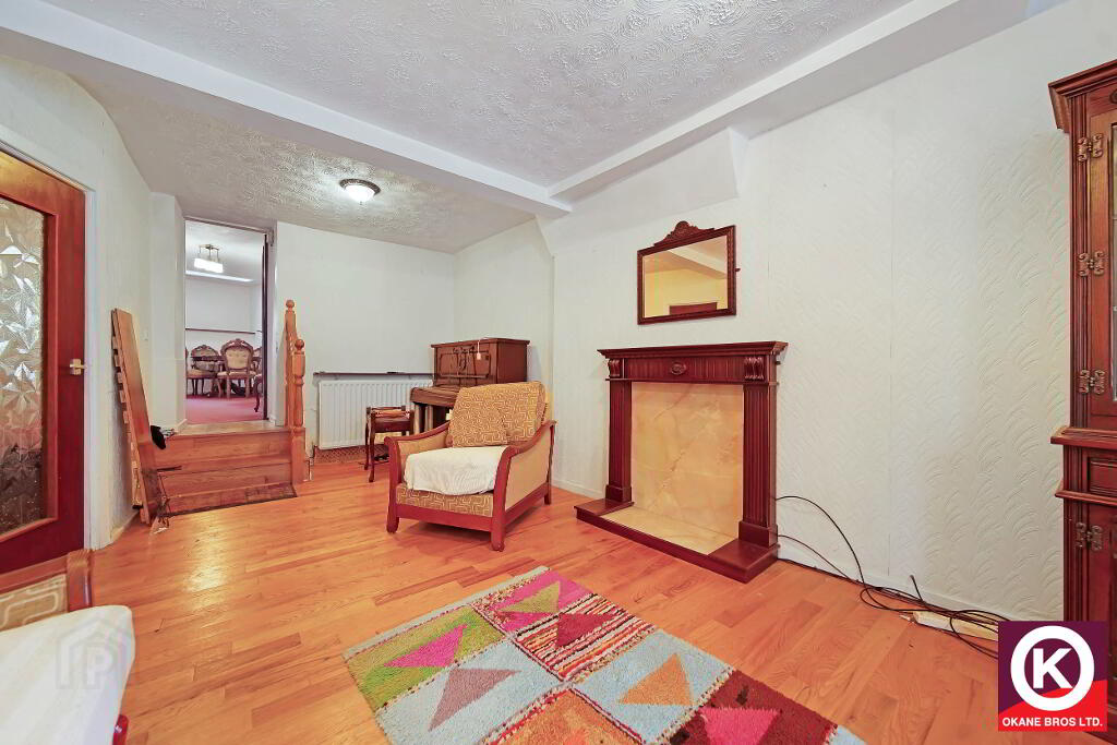 Laminate floor covering. Mahogany surround fireplace. TV point.