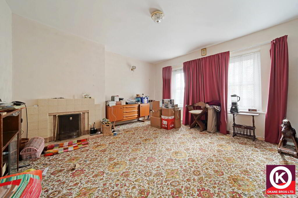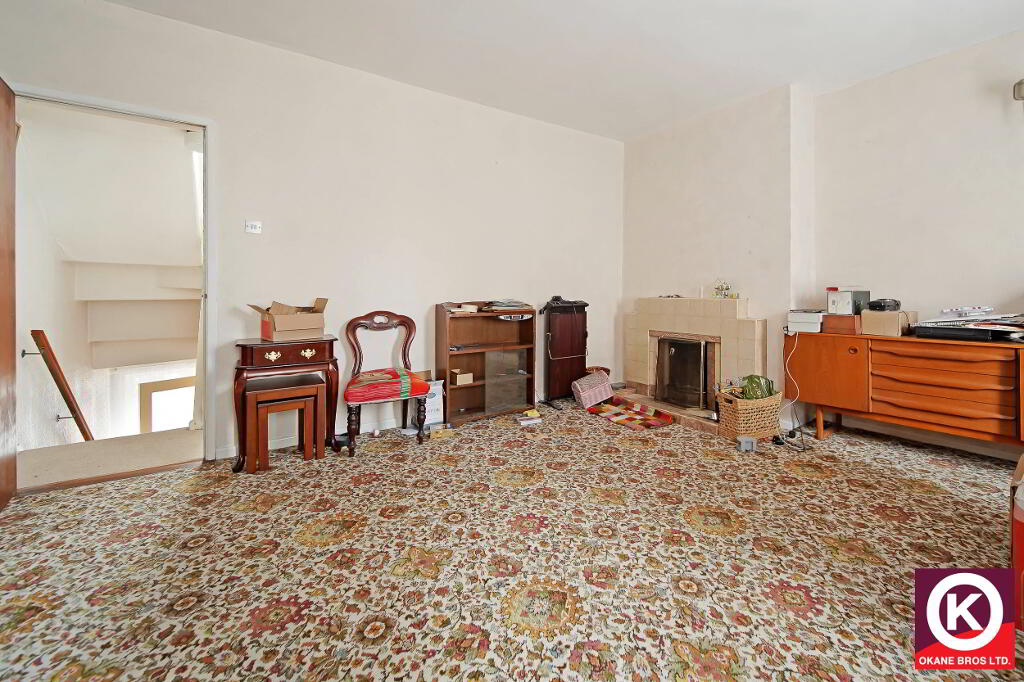Carpet floor covering. Tiled surround fireplace. WHB.